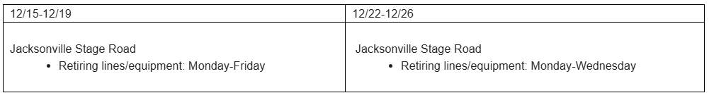 **THE CREWS WILL NOT BE WORKING ON DECEMBER 25 AND DECEMBER 26. HAPPY HOLIDAYS!
