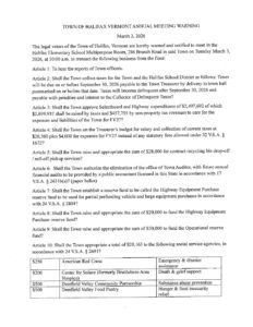 Annual Town Meeting Warning 2026